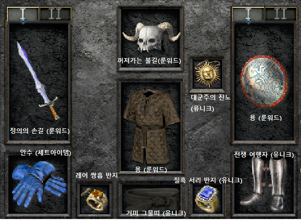 | 1 Ral 룬 + 1 Sol 룬 + 1 퍼펙트 에메랄드 + 일반 세트 무기 | 세트 무기의 뛰어난 버전 |